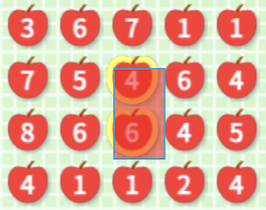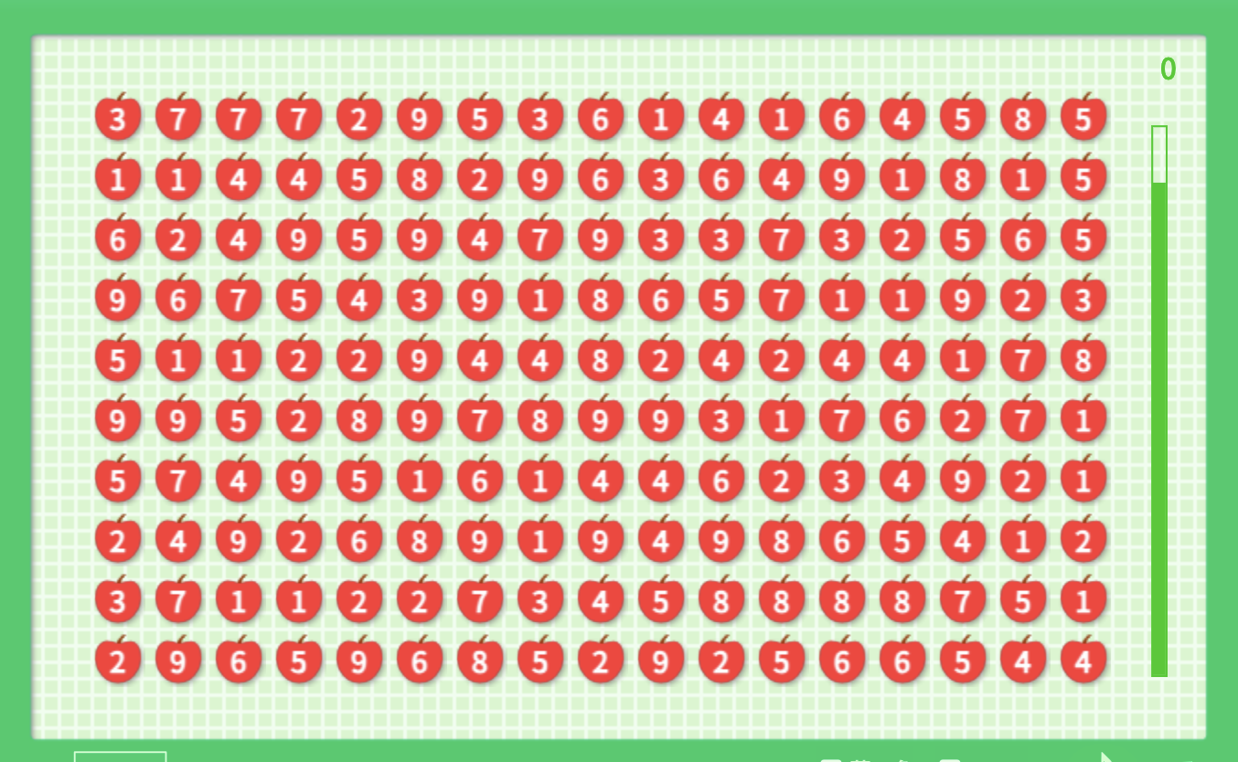 화면 위를 마우스로 드래그해서, 숫자의 합이 10이 되도록